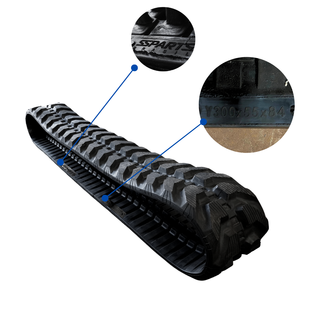 Kit Par de Esteira de Borracha 300x55x84 Compatível com Mini Escavadeira Sany SY35
